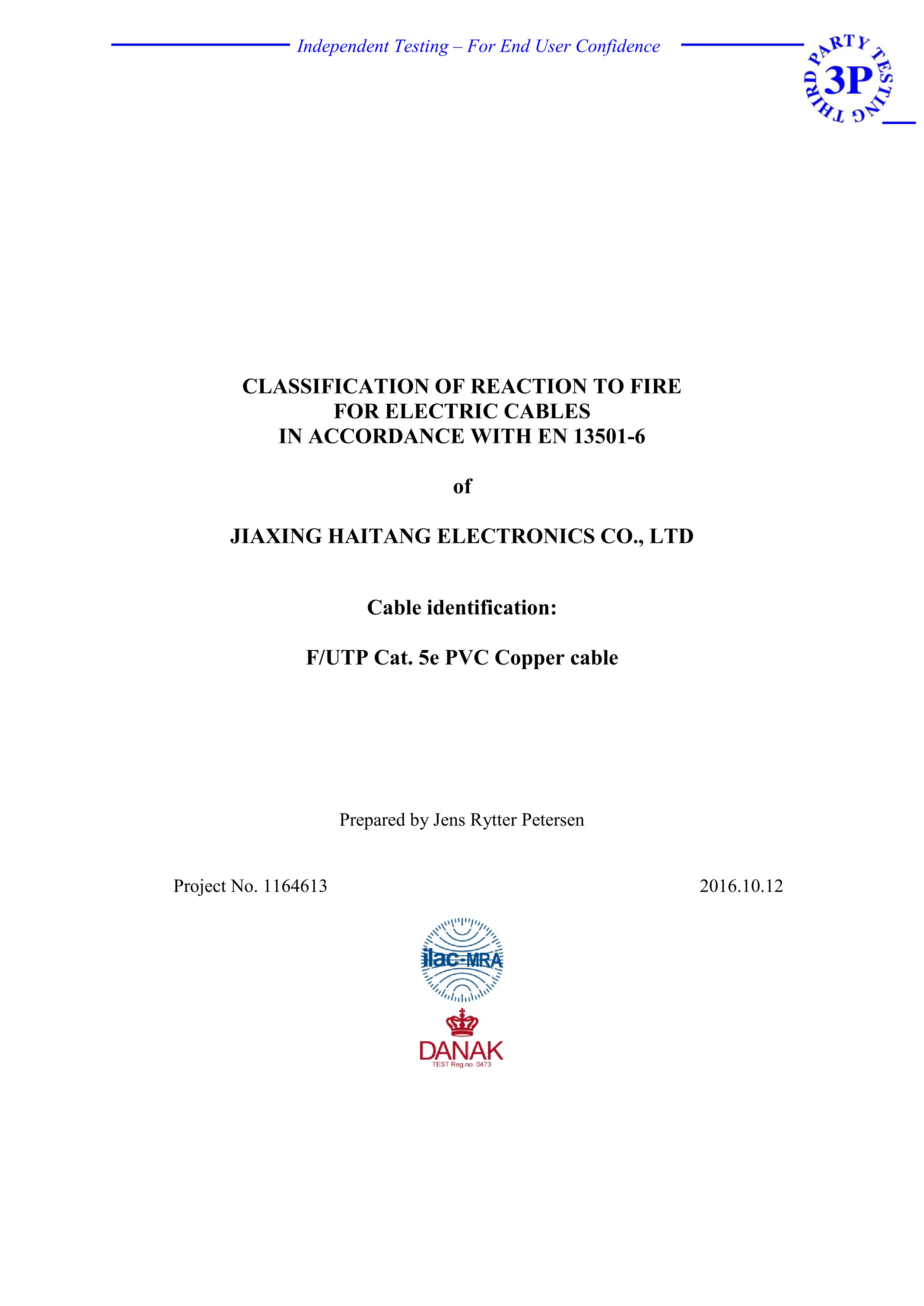 FUTP Cat.5e LSHF Copper cable 3P CPR E級認(rèn)證
