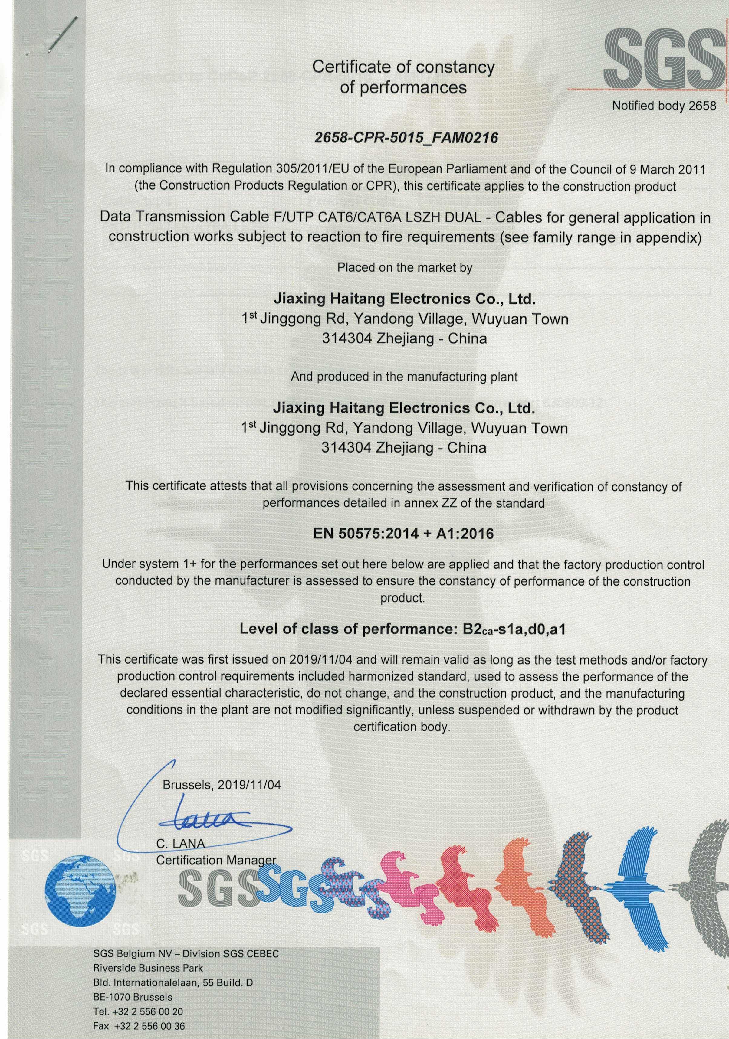 FFTP Cat 66A77A8 LSZH SGS CPR B2級