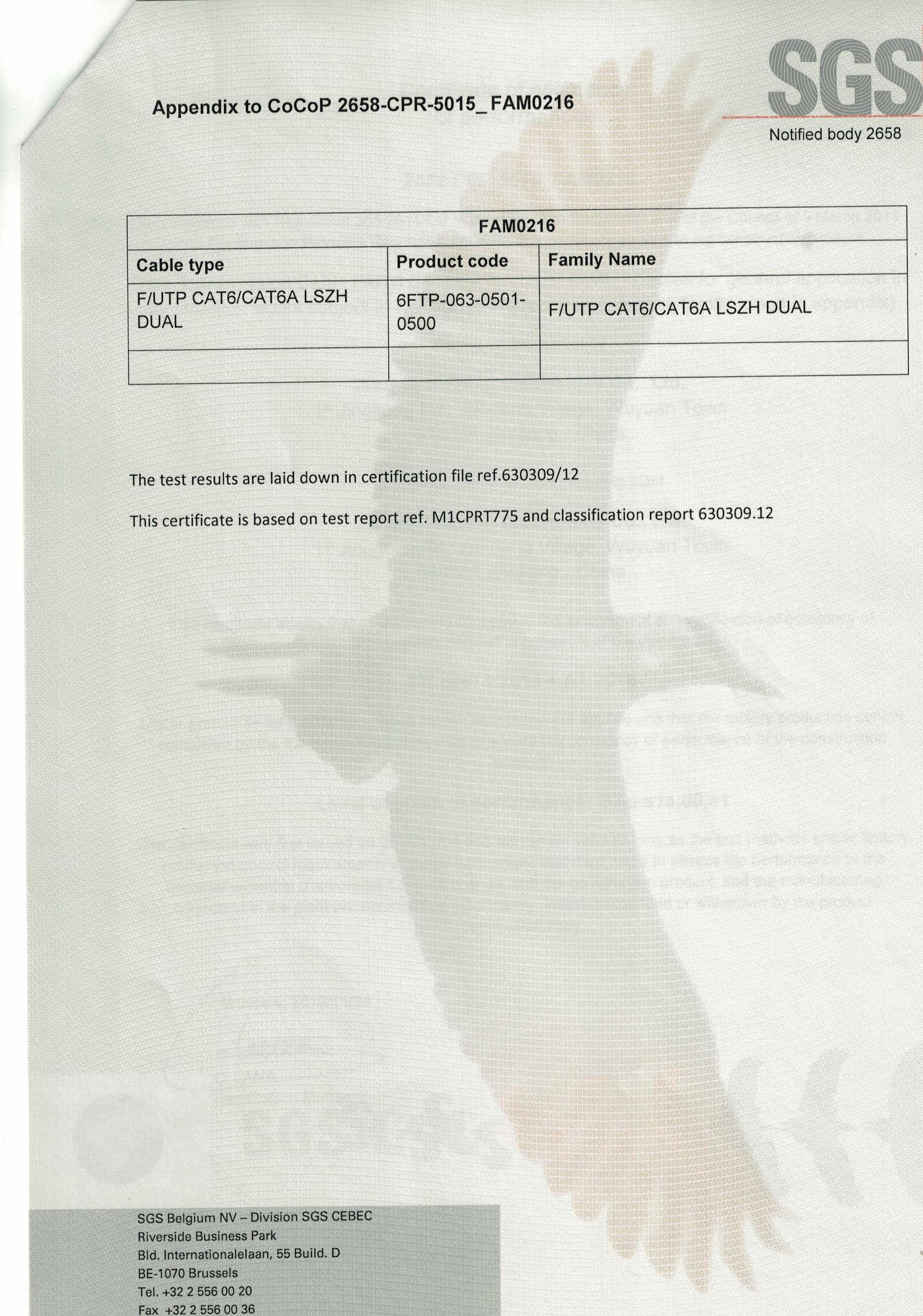 FUTP Cat 66A LSZH DUAL SGS CPR B2級認(rèn)證