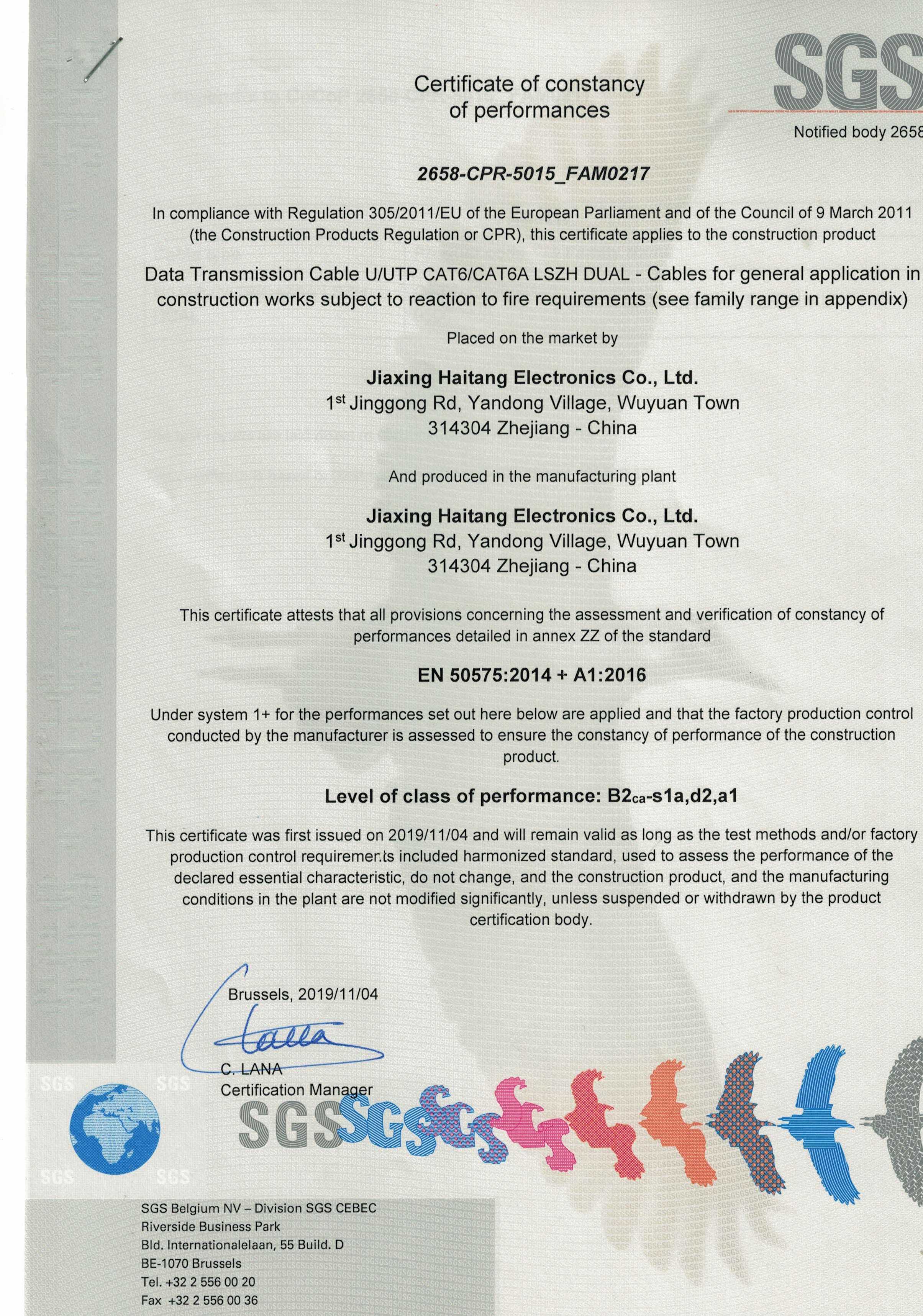 UFTP CAT6 6A LSZH SGS CPR B2級(jí)認(rèn)證